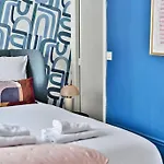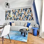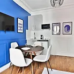Das Appartement Paisible Centre de Paris - Bleu verfügt über eine Sitzecke, ausgestattet mit einem Sofa und modernen Annehmlichkeiten wie einem Flachbildfernseher mit Satellitenkanälen und einem Fernsehen mit mehreren Kanälen. Dieses 40 m^2 große Apartment hat 1 Schlafzimmer. Es gibt 1 Bad mit einer getrennten Toilette und einer Dusche und einem Haartrockner und Handtüchern.